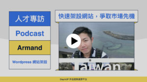 Armand主修資訊工程,善於掌握時程,專長Wordpress網站架設、SEO優化、廣告投放、流量工具串接;若在素材準備充足的情況下,最快可以於一天內完成一個網站,讓客戶可以快速試驗,爭取先機。
